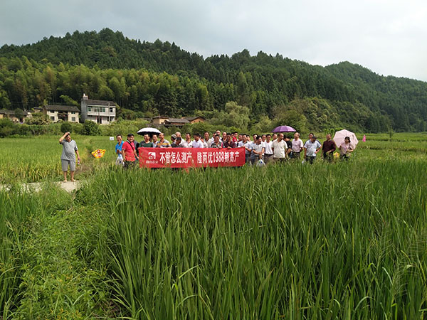 示范戶種植了2畝隆兩優(yōu)1988,長勢喜人,穗大粒多,劍葉挺拔,一派繁榮豐收的景象,在場的零售商無不豎起大拇指,紛紛贊揚財神稻的優(yōu)秀表現,對來年財神稻的銷售充滿信心,大家高興地說到:“如果邵武各地都種滿財神稻,那么“糧倉”的美譽將會更加名副其實!