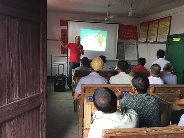 測產(chǎn)完畢,移師村委會,百分農(nóng)業(yè)技術(shù)骨干袁應(yīng)亮老師繼續(xù)給大家再詳細(xì)地講解隆王稻,隆王稻為什么好?好在哪?接著講解了高產(chǎn)栽培技術(shù),病蟲害預(yù)防等知識,會場氣氛非常熱烈,農(nóng)戶積極參與互動提出自己遇到的問題,袁老師也為他們一一解答,此次會議就在這熱烈地討論中結(jié)束了。