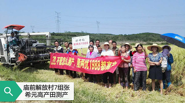 2017年9月13日上午,在當(dāng)陽廟前鎮(zhèn)煙集村和廟前鎮(zhèn)解放村分別在隆兩優(yōu)1988代理商朱錦華和財(cái)神稻推廣零售商王敏的組織下,迎來了現(xiàn)場來參觀的50個(gè)種植戶代表,一起見證財(cái)神稻的高產(chǎn)量表現(xiàn)。