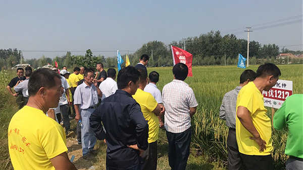 2017年9月18日上午,江蘇睢寧晶兩優(yōu)1212觀摩會(huì)正式拉開序幕。睢寧各個(gè)地方的零售商及核心種植戶陸續(xù)來(lái)到睢寧邱集鎮(zhèn)的晶兩優(yōu)1212示范田。剛來(lái)到田間大家就被映入眼簾的晶兩優(yōu)1212震撼到了。是什么讓他們這么震撼呢?